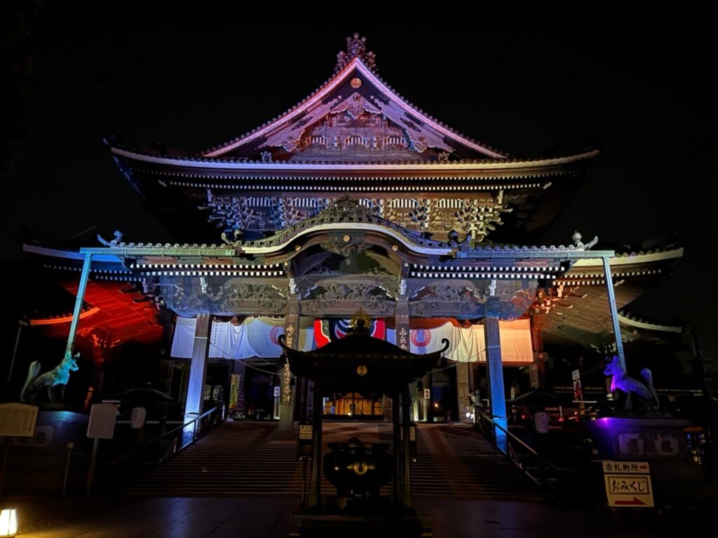 豊川稲荷のYORU MO-DE 未分類 Twitter Facebook はてブ Pocket LINE コピー 2021.12.08 何か月か前に豊川稲荷のライトアップを見に行ってきました。入場すると、1人一1つバラや炎の模様が地面に映し出されるちょうちんを借りることができます。このちょうちんはソーシャルディスタンスを参加型アートにした作品で、自然と人と距離をとることができます。とてもかわいい柄で歩いてる時もワクワクした気持ちで参拝することができました。当日チケットと前売りチケットではお値段が違うのでチェックしておくとお安く入場することができます。また行きたいです!